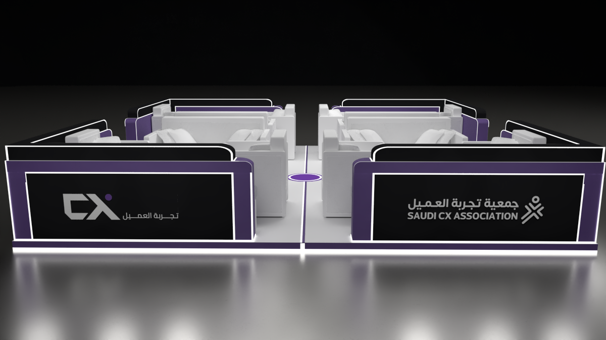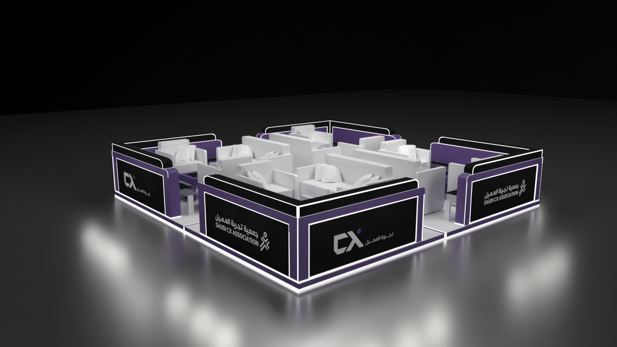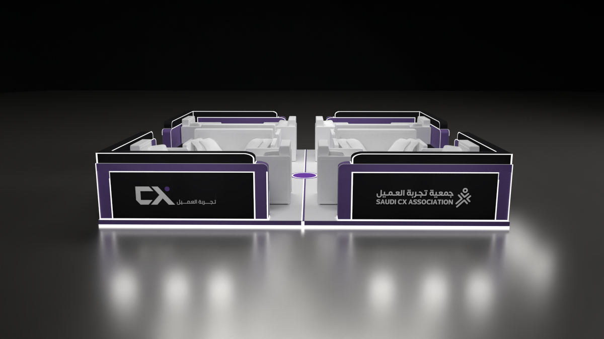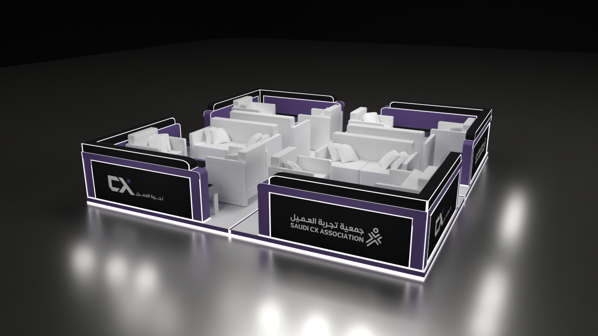 This project involved designing a modern, hospitality-driven lounge booth for the Saudi CX Association, aimed at hosting VIP guests, industry leaders, and partners during an exhibition. The goal was to create a premium seating experience that aligns with the association’s brand identity while maximizing comfort, flow, and visual presence within a compact footprint.