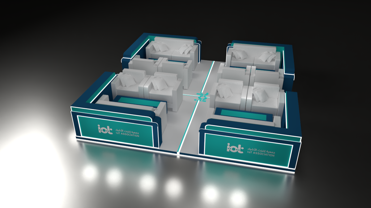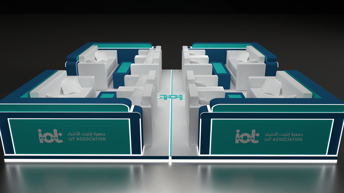This project involved designing a modern and functional networking lounge for the IoT Association, created specifically for large-scale conferences and technology exhibitions. The booth layout focuses on structured seating clusters that support meetings, discussions, and collaboration among industry professionals, investors, and association members.